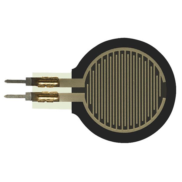 This force-sensing resistor (FSR) from Interlink Electronics is a passive component that acts as a variable resistor, with resistance decreasing in response to increasing applied force, which makes it easy to add a touch interface to your project or create a robot with much more sophisticated tactile senses than are possible with simple lever switches. The polymer thick film (PTF) device is optimized for use in human touch control of electronic devices and can sense an applied force anywhere in the active area ranging from a few dozen grams to a few kilograms.