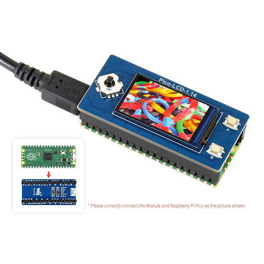 Notify me when its in stockWith a 1.14 ”LCD screen module with a resolution of 240X135 pixels, you can easily realize your projects that require the use of a screen on the Raspberry Pi Pico. You can perform projects such as game console with joystick and button on it.