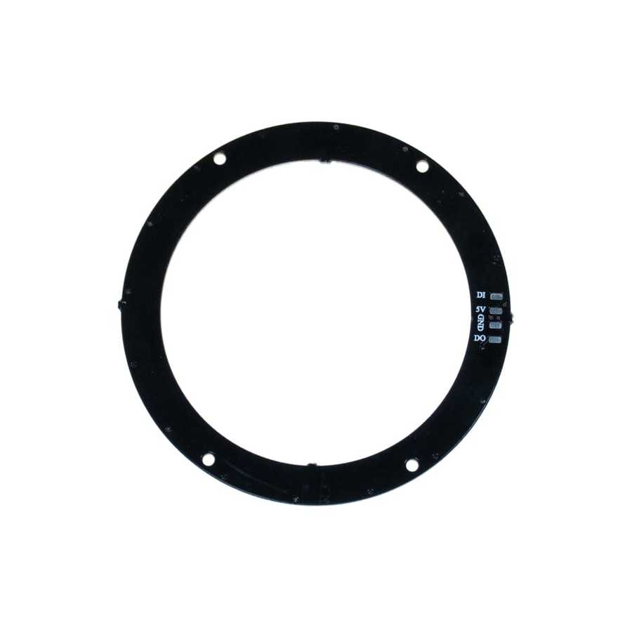 Notify me when its in stockYou can control these LEDs by using only one microcontroller pin. 16 ultra bright smart LED NeoPixels are arranged in a circle. The rings are 'chainable' - connect the output pin of one to the input pin of another.