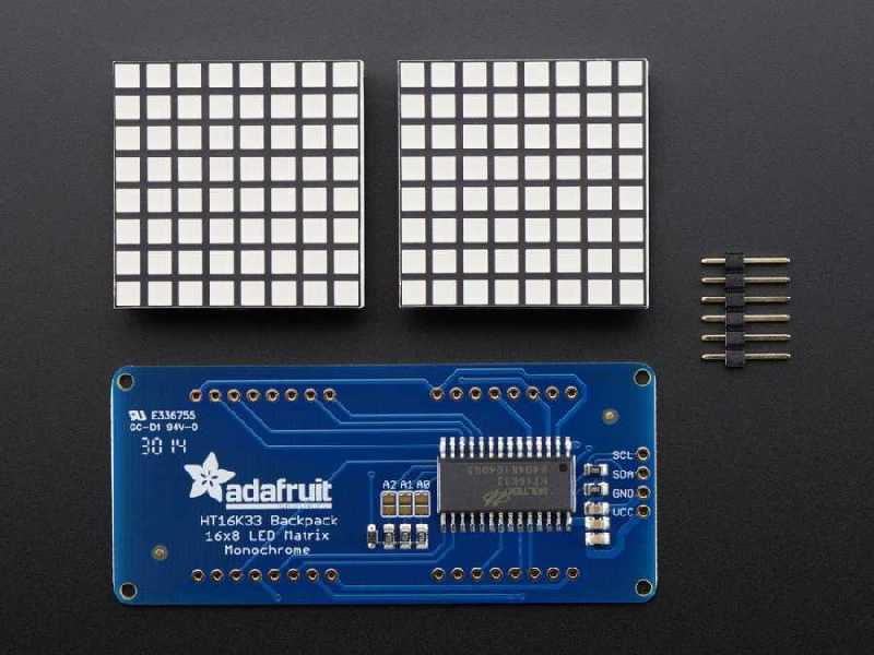 Notify me when its in stockYou can use this 128 (in 16x8 order) LED matrix PCB with Arduino or other microcontrollers. By the I2C connection you will be able to add a LED matrix to your projects using less number of I/O pins. Additionally it is possible to set the brighness of the LEDs in 16 levels by the driver IC on the board.