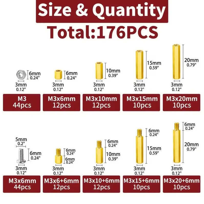 The 176-Piece M3 Brass Standoff Kit is a premium solution for securing and stacking printed circuit boards (PCBs) and other electronic modules. Made from high-quality brass, these hexagonal spacers offer superior durability and corrosion resistance compared to plastic alternatives, making them ideal for professional-grade DIY electronics and industrial applications.