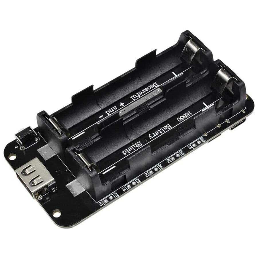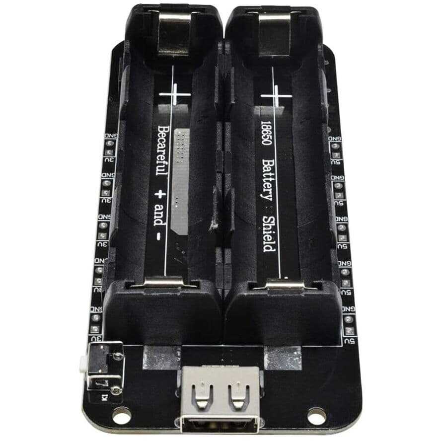 Notify me when its in stockThe 2-Switch 18650 Lithium Battery Shoe V8 allows you to both charge and use 2 18650 Lithium batteries. It has 2 charging ports, Micro USB and USB Type-C, in its ergonomic black design. The module has output values of 3V/1A and 5V/2.2A. The 5V output supports a maximum current of 3A. Not recommended for overload, otherwise module malfunctions may occur. It is recommended to use 2 18650 Lithium batteries. Micro USB charging current is 600mA.