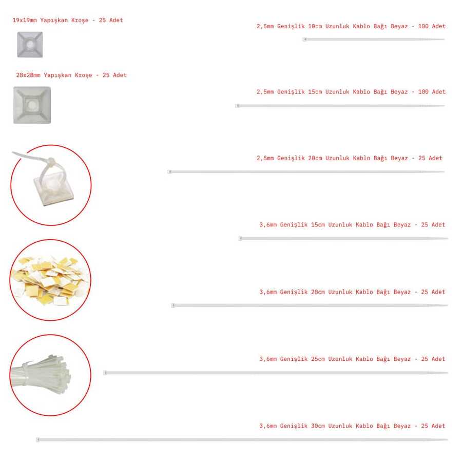 | 3,6mm Genişlik 15cm Uzunluk Kablo Bağı Beyaz | 25 |