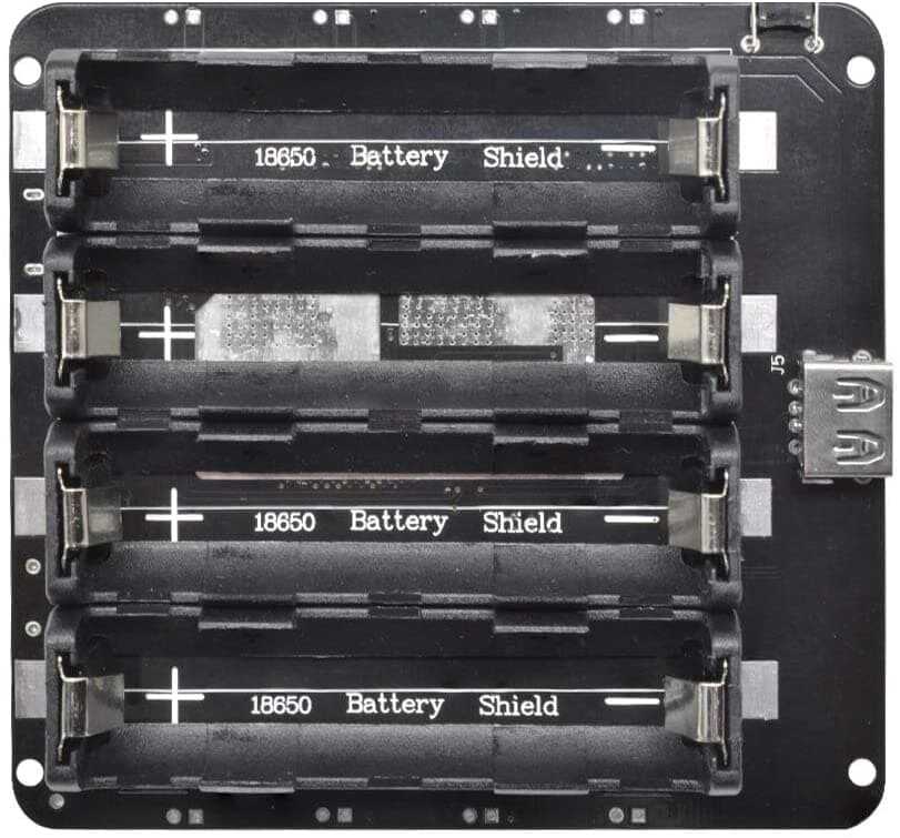 Notify me when its in stockThe 4-Switch 18650 Lithium Battery Pack V8 allows you to both charge and use 4 18650 Lithium batteries. It has 2 charging ports, Micro USB and USB Type-C, in its ergonomic black design. The module has output values of 3V/1A and 5V/2.2A. The 5V output supports a maximum current of 3A. Not recommended for overload, otherwise module malfunctions may occur. It is recommended to use 4 18650 Lithium batteries. Micro USB charging current is 600mA.