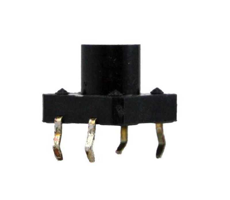 4 pinli bu push buton siyah renkli ve 12x12mm boyutlarındadır. Buton gövde yüksekliği 4mm, pin yüksekliği 6mm'dir.