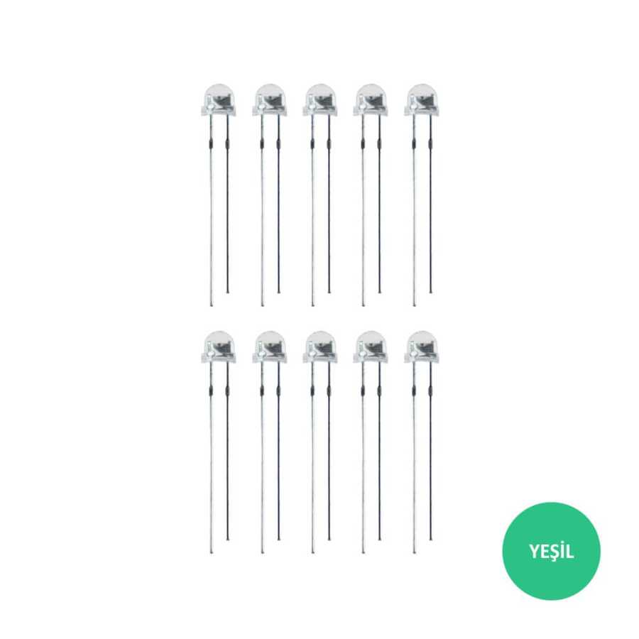 4.8mm Şeffaf Yeşil Mantar Led Paketi içerisinde 10 adet led bulunur.