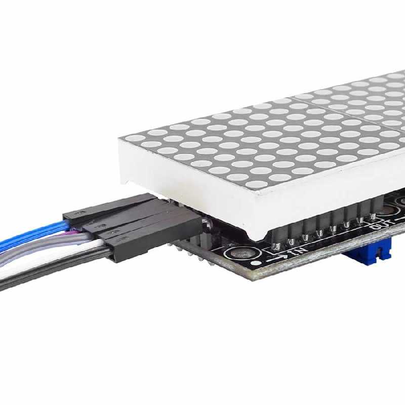 Kit includes: 4 8x8 matrix PCB, 1 90 degrees 5-pin male header, 1 5-pin female - female jumper cable.