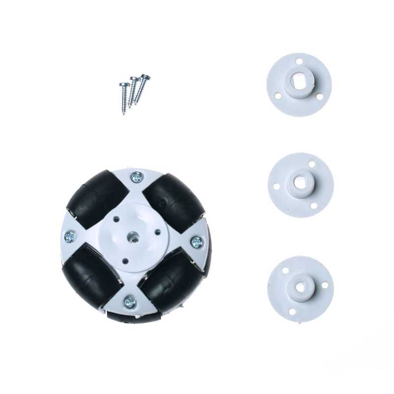 This is a 50mm Omni directional robot wheel,it's useful as they roll freely, The 50mm plastic omni wheel is a robust,durable and double row wheel that provides easy 360°movement prope with rotational and sideways manoeuvrability. It comes with 3 different styles of hubs for the Arduino motors. If you use this omni wheel on your robot, it can be able to forward/backwards and rotation without changing its orientation.
