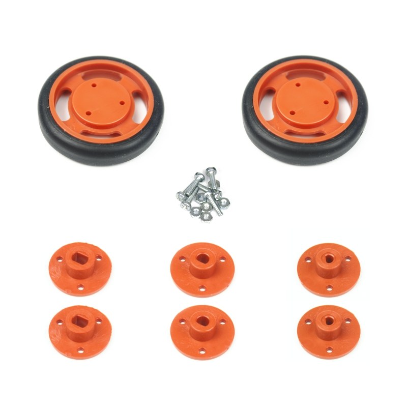 Bu tekerlek seti, robot projelerinizde kullandığınız çeşitli motorlara uyum sağlayacak şekilde tasarlanmıştır. 3mm, 4mm D tipi şaftlı motorlar ve L tipi plastik redüktörlü motorlara uyumlu şaft adaptörleri ile birlikte gelmektedir. Bu sayede bir çok motor ile birlikte kullanma imkanı sunmaktadır.