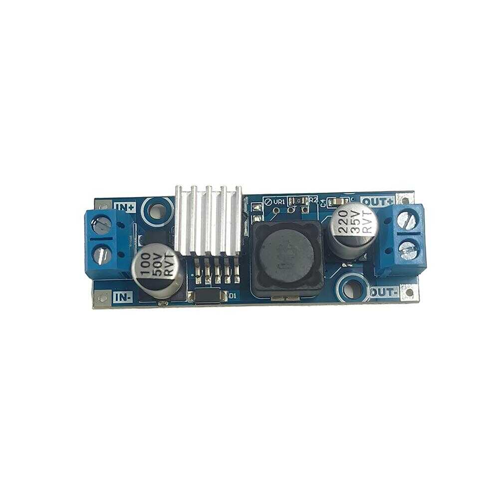 DC-DC step-down voltaj regülatör kartı üzerinde anahtarlamalı gerilim regülatörü olan LM2596 entegresi bulunmaktadır. Regülatör üzerinden 3A'e kadar akım akıtılabilir. Giriş gerilimi 4-35V arası olup, çıkıl gerilimi sabit 5V'tur. Çok kolay kullanıma sahip ve yüksek performanslı bu LM2596 voltaj regülatörü kartı bir çok hobi ve robotik projenizde giriş gerilimlerinizi ayarlamanıza imkan vermektedir.