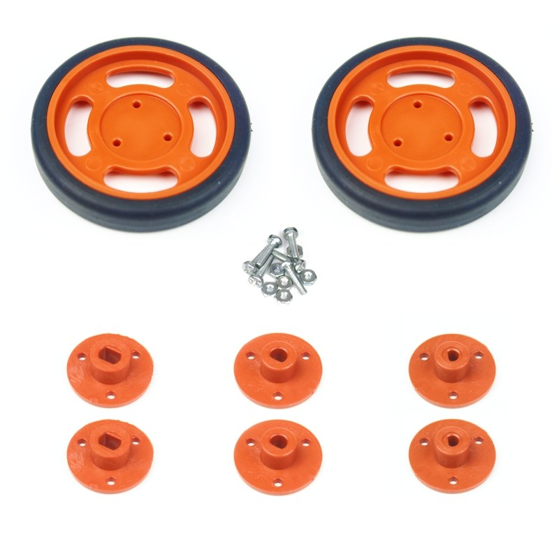 This wheel set is designed for the gearmotors that you used in your robotic projects. The package contains shaft adapters compitable with 3mm and 4mm D type shafts and L type plastic reducers. With this, you can use the wheel with so many gearmotors.