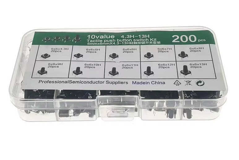 6x6 Tact Switch 4 Pin Buton Seti - 200 Adet (10 Farklı Boy)