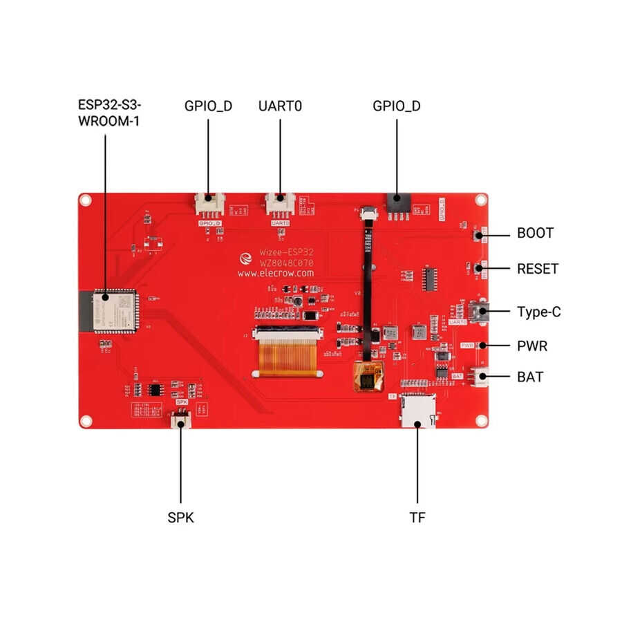 1 x 7.0 İnç ESP32 HMI TFT LCD Dokunmatik Kutu