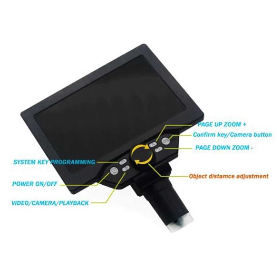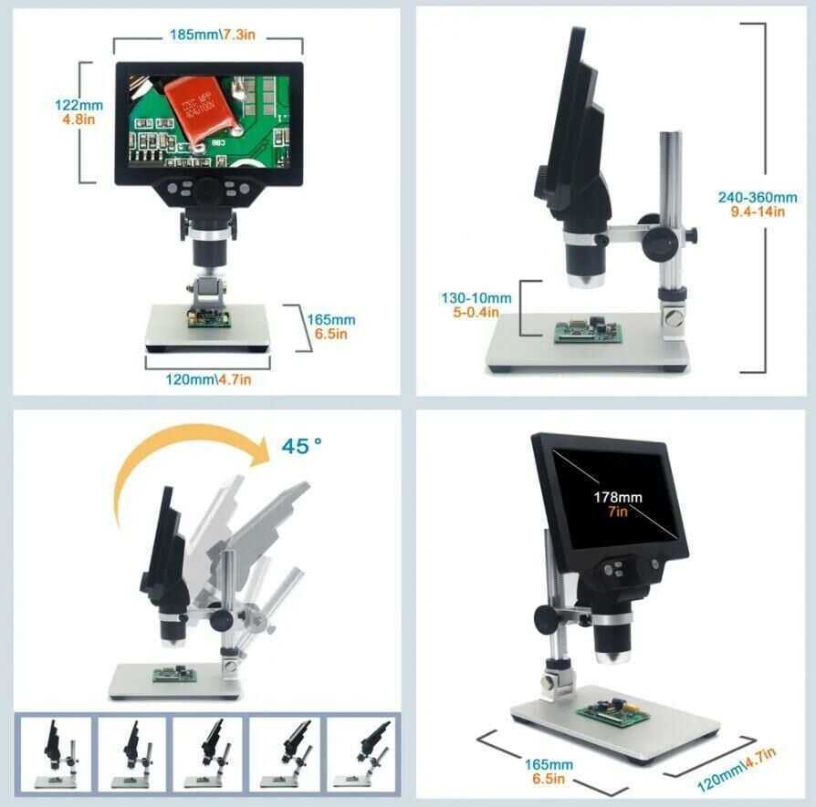 The 7 Inch 1200X USB 12MP Digital Microscope is an ideal solution for electronic board inspection, soldering control, industrial quality control, education, and hobby projects with its high-resolution imaging capability and large display. Thanks to its 7-inch LCD screen, you can perform detailed observations without the need for an external computer.