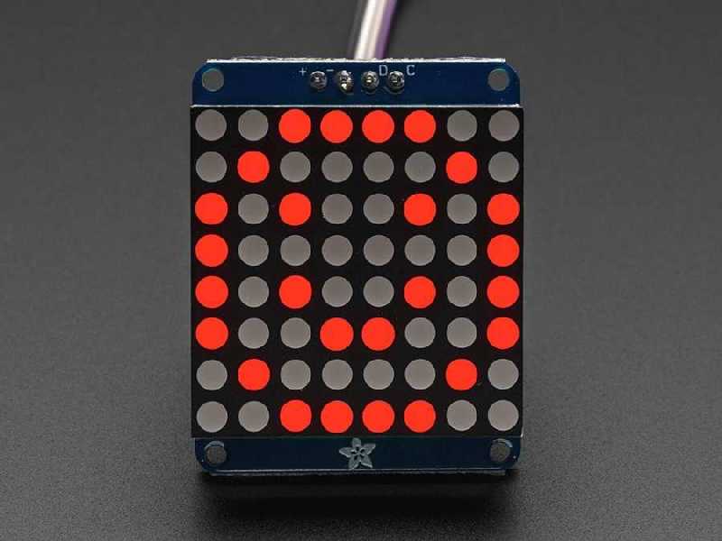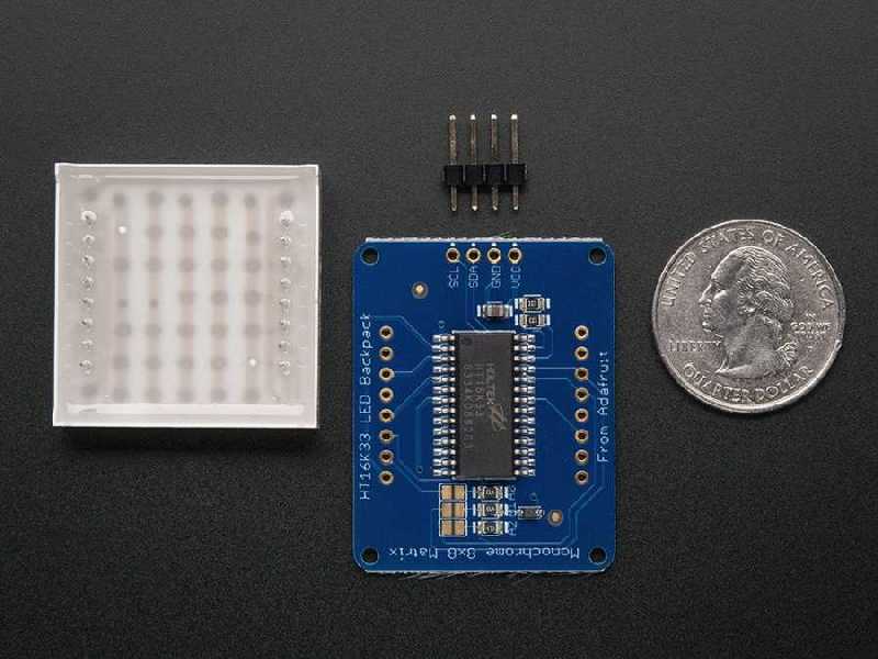 Notify me when its in stockYou can use this 64 (in 8x8 order) LED matrix PCB with Arduino or other microcontrollers. By the I2C connection you will be able to add a LED matrix to your projects using less number of I/O pins. Additionally it is possible to set the brighness of the LEDs in 16 levels by the driver IC on the board.