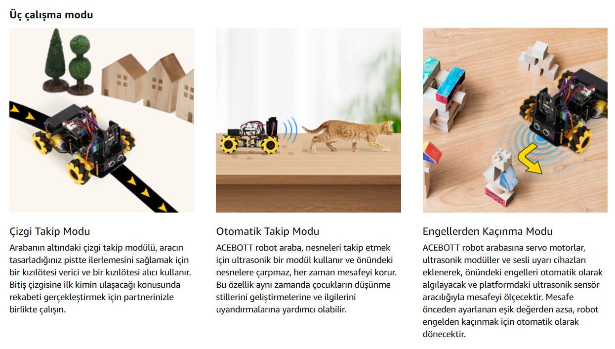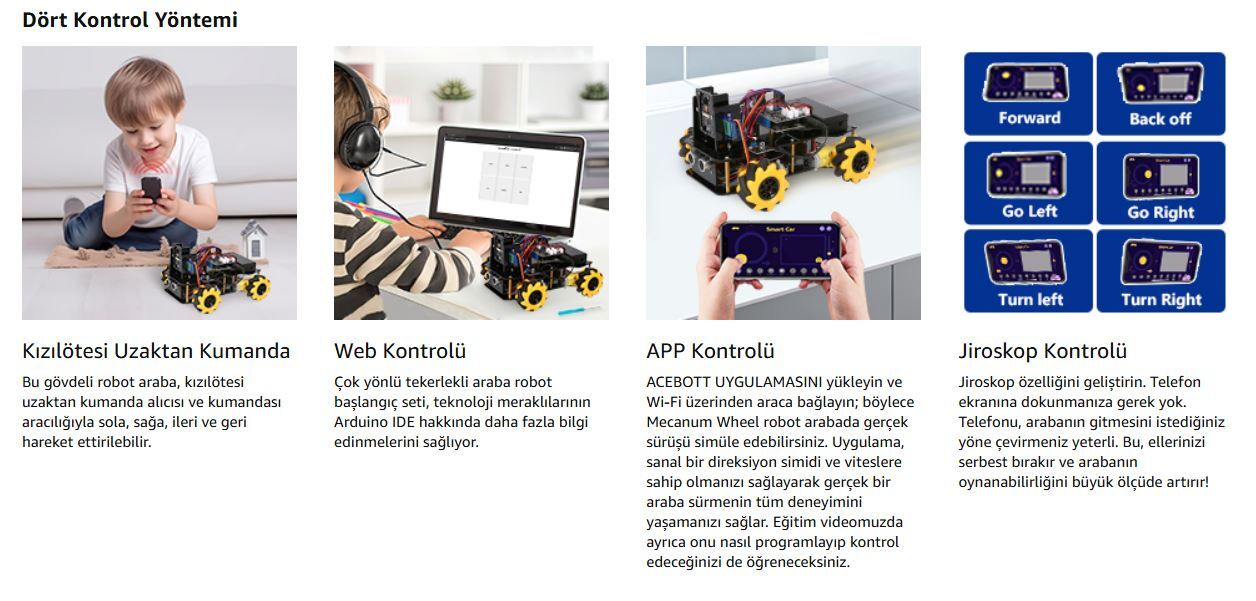 ACEBOTT Omni Tekerlekli Akıllı Robot Araba Başlangıç Seti Teknik Özellikleri: