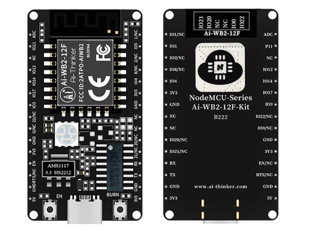 Ai WB2 12F Kit is a development board for Ai WB2 12F modules. Ai WB2 12F, Shenzhen Ai Thinker Technology Co., Ltd. It is a Wi-Fi and Bluetooth module offered by The module implemented the unit and Wi-Fi 802.11b/g/n protocol and BLE 5.0 protocol, with a BL602 chip as the core processor. BL602 chip, low power consumption, 276 KB RAM and SDIO, SPI, UART, VDC, IR remote, PWM, ADC, DAC, PIR and GPIO. It can be widely used in the Internet of Things (IoT), mobile devices, wearable electronics, smart homes and other fields.