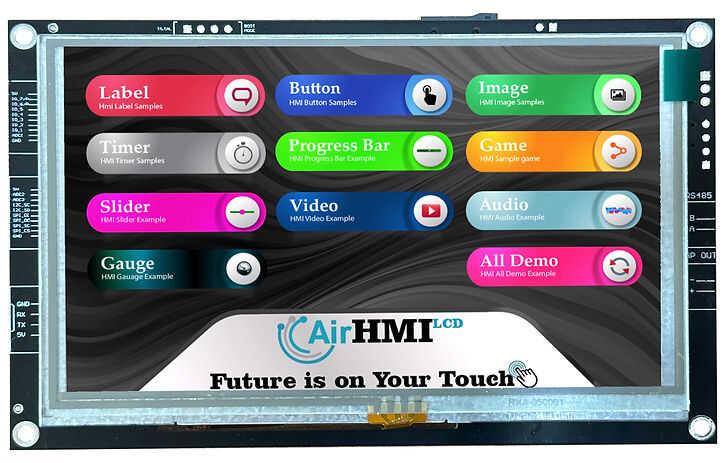 Gelince Haber VerAIRHMI TFT ekranlar; sürükle bırak editörü ve C tabanlı programlama dili ile kolay GUI oluşturulabilen özelleştirilebilir TFT ekranlardır. Kullanıcı dostu arayüzü sayesinde tasarımlarınızı kolaylıkla oluşturabilirsiniz. AIRHMI bu konuda da buton, label, image, progress bar, slider, ibre (gauge) gibi birçok nesne ile yardımcı olmaktadır. Editörü ve basit kullanım yapısı sayesinde geliştirmelerinizde zamandan tasarruf sağlayarak hızlı bir şekilde tasarımınızı hazırlayabilirsiniz. Ayrıca ihtiyaç duyacağınız UART, GPIO , ADC , PWM, I2C ve SPI pinleriyle projelerinizi kolaylıkla yönetebilirsiniz. Kontrol kartı ile haberleşmesi TTL (UART) arabirimi aracılığı ile sağlanır. (RS-485 haberleşmeyi desteklemektedir. Opsiyonel olarak sunulmaktadır). Dahili Buzzer basit bir şekilde çaldırılabilir. Dokunmatiğe her dokunduğunuzda veya uyarılarda buzzer fonksiyon setleri ile kullanabilirsiniz. Industry serisinde Video ve ses oynatma özellikleri ile projelerinizi görsel ve sesli olarak zenginleştirebilirsiniz. AIRHMI ekranlar ile projelerinizin sınırı hayal gücünüz olacak.
