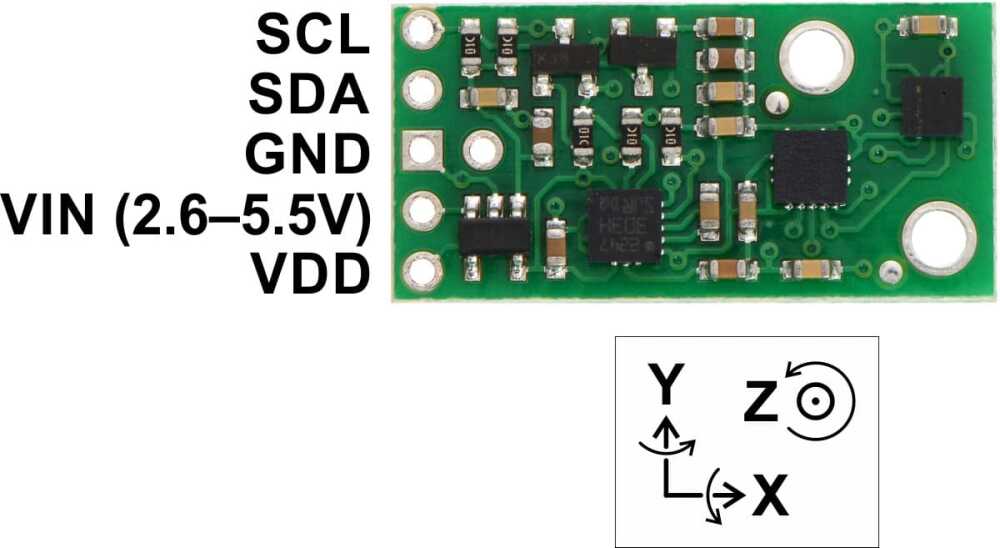The board is pin-compatible with the AltIMU-10 v3 and MinIMU-9 v3 and operates without issue aside from some minor software differences. The LPS25H, L3GD20H, and LSM303D sensors offer many configuration options and are controlled via a shared I²C interface. The sensor axes are aligned on the board, simplifying orientation and altitude calculations. With appropriate algorithms, the 9-axis data can be used to compute orientation (AHRS), and the pressure sensor provides altitude data, offering a total of 10 degrees of freedom (10DOF).