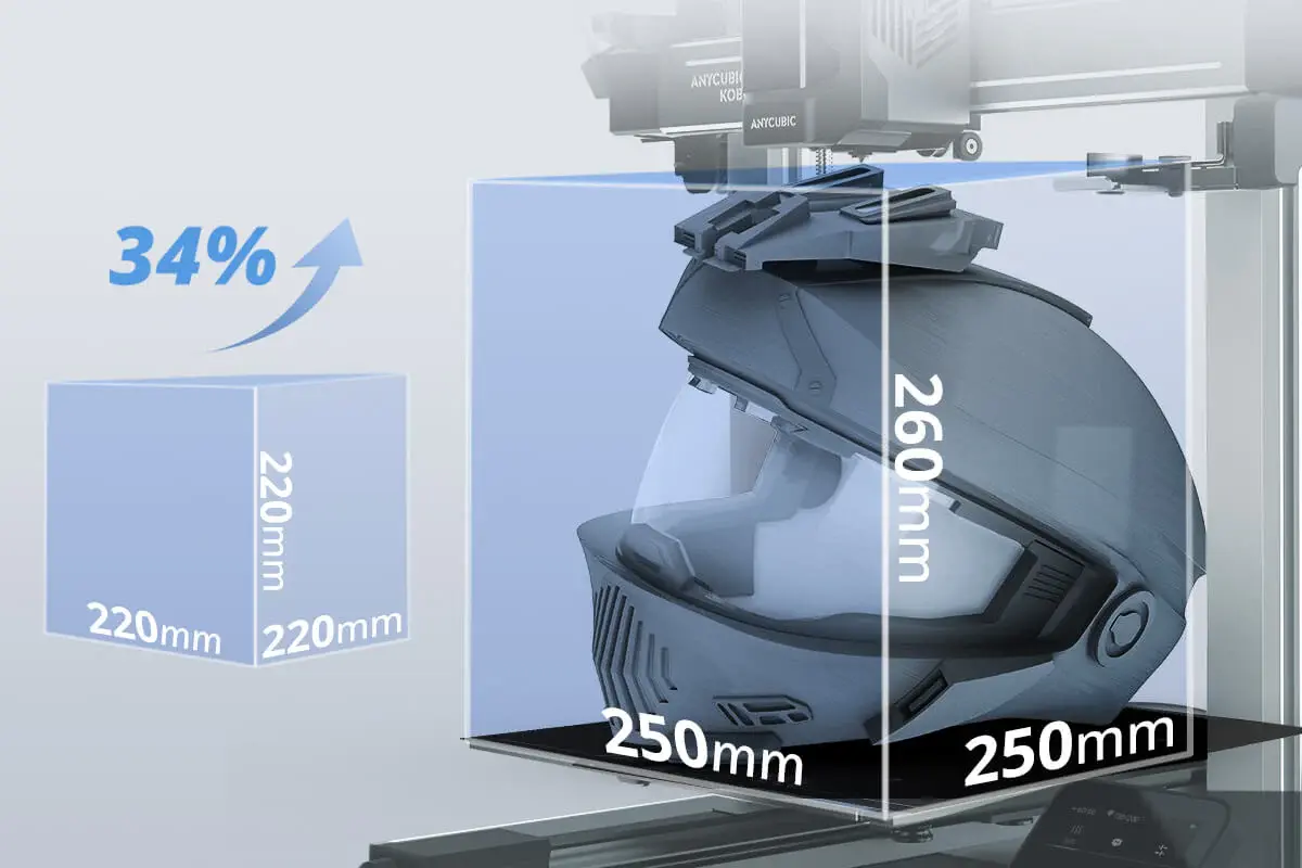 Print Volume: 250 × 250 × 260 mm (Width × Depth × Height)