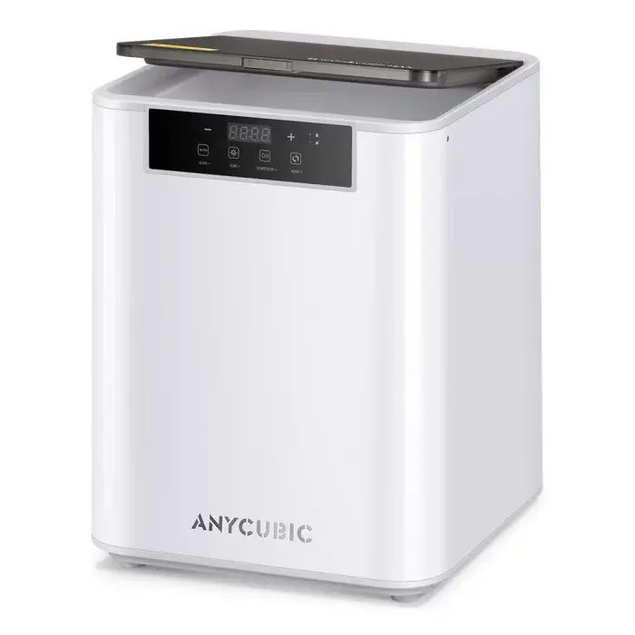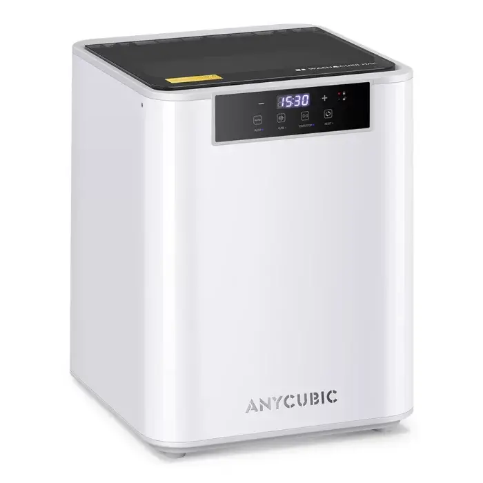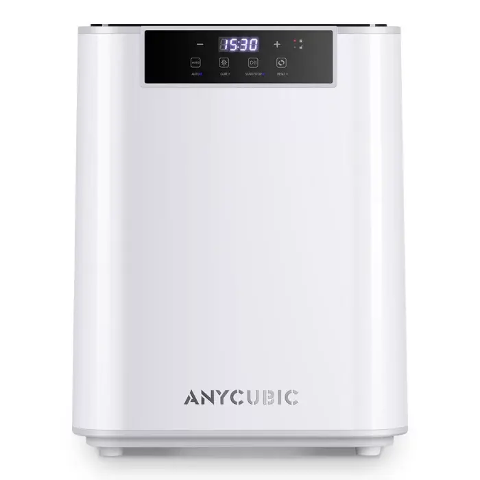 The Anycubic Wash & Cure Max machine features a sleek pearl white body, complemented by a sleek grey-toned lid that exudes a fresh and minimalist aesthetic. Convenient all-in-one pop-up lid design allows for easy opening and closing. The user-friendly control panel interface provides a smooth and flawless operating experience.