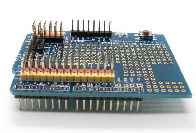 Arduino Electronic Brick Proto Shield is very useful product which can be used with Arduino boards and designed for stacking many input and output units on board. It is designed for Arduino UNO R3 version and also it can be used with Leonardo or other versions which have same pin layout.
