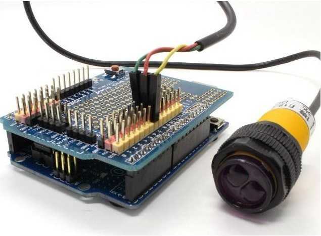 Arduino's all input and output pins on board are in 3-pin sequece in the order of DATA, VCC and GND. Therefore any sensor, servo, relay etc. can be stacked to the board and used easily. VCC and GND routes are coloured differently so they can be identified easily.