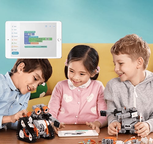The blocked-based drag and drop programming editor lets users of all levels create custom programmed sequences. Program the robot to dance, play, walk, and more all using Blockly Coding.