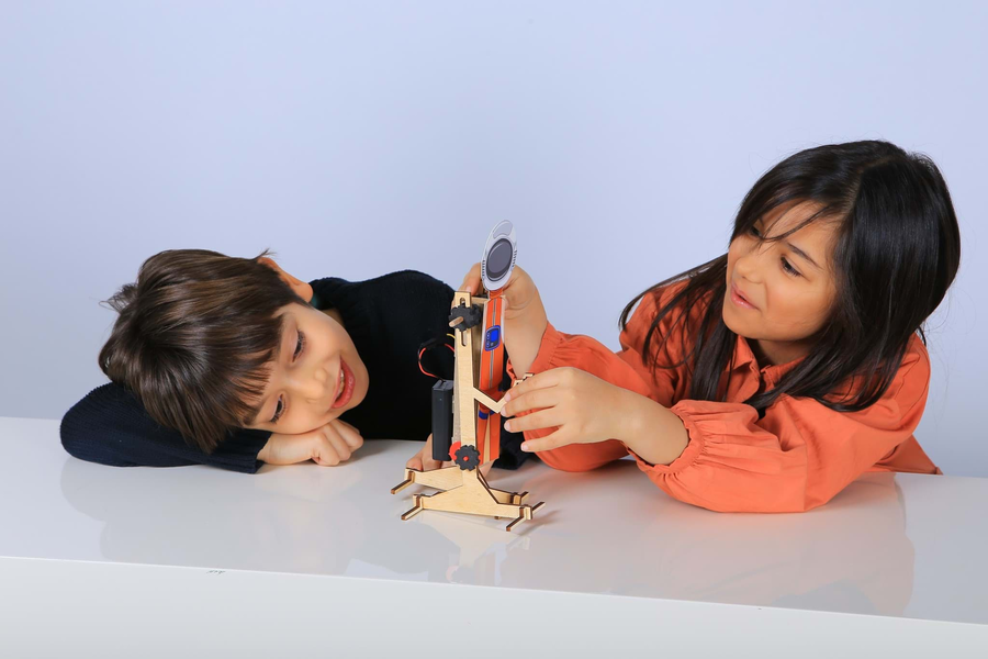 Get ready to explore electronics, energy transformations, friction force as you assemble specially designed parts while building the astronaut robot. Enrich your experience by changing the positions and angles of the pieces.
