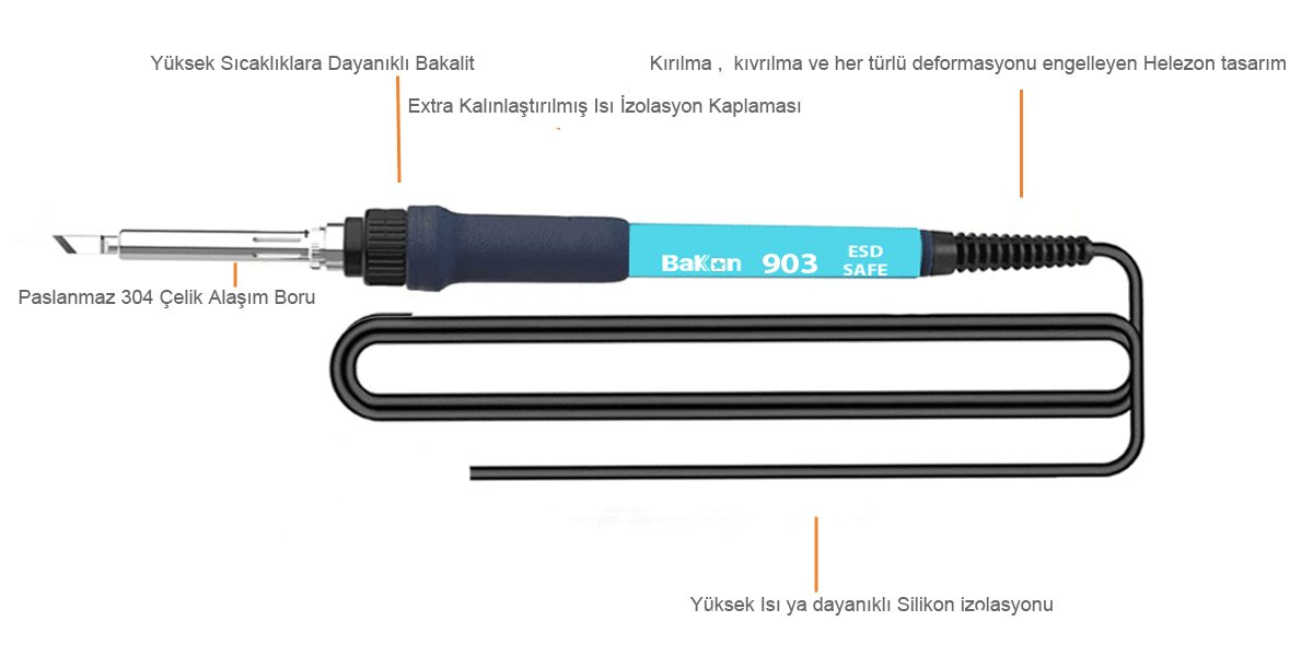 Bakon BK903 Lehimleme Havya Kolu Teknik Özellikleri: