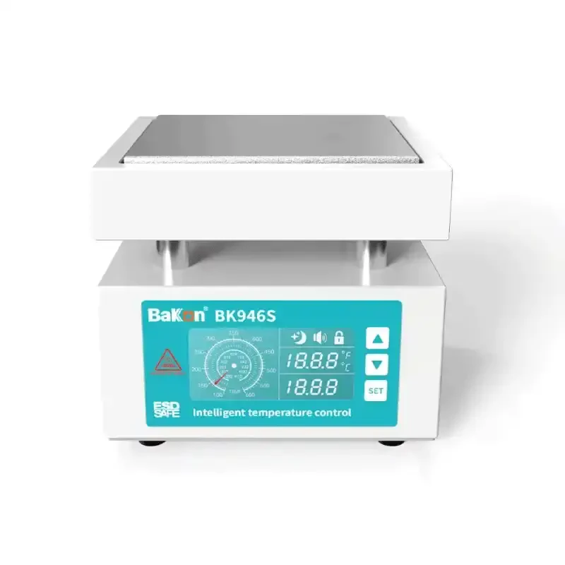 The Bakon BK946S is an advanced preheating station used in professional electronics repair and production processes, featuring a compact design and a high-performance 400 W heating capacity. By preheating small and medium-sized PCBs, it enables safer and more stable results for soldering, SMD removal/installation, repair, and modification operations. It minimizes thermal stress issues commonly encountered on multilayer PCBs and helps protect sensitive components.