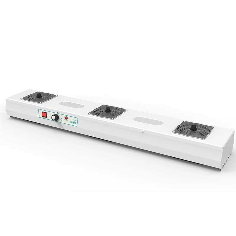 The Bakon BK5800-3 Ceiling Type ESD Ionizer Air Blower is a professional ionizing device designed to effectively neutralize static charges in electronic production lines, laboratories, and static-sensitive work environments. Its ceiling-mounted design allows it to efficiently cover large work areas and ensure balanced ion distribution over the workspace.
