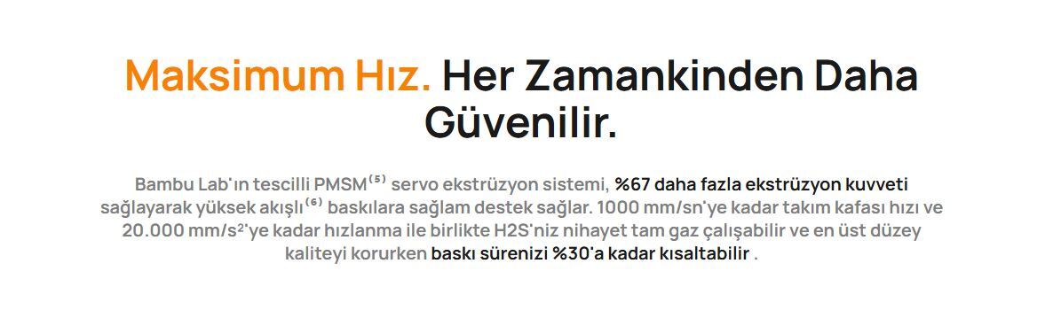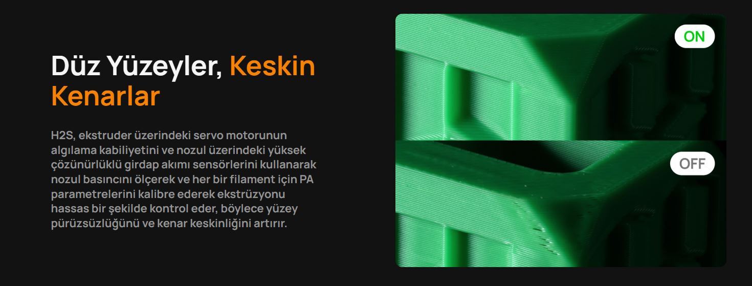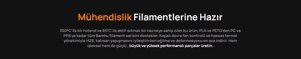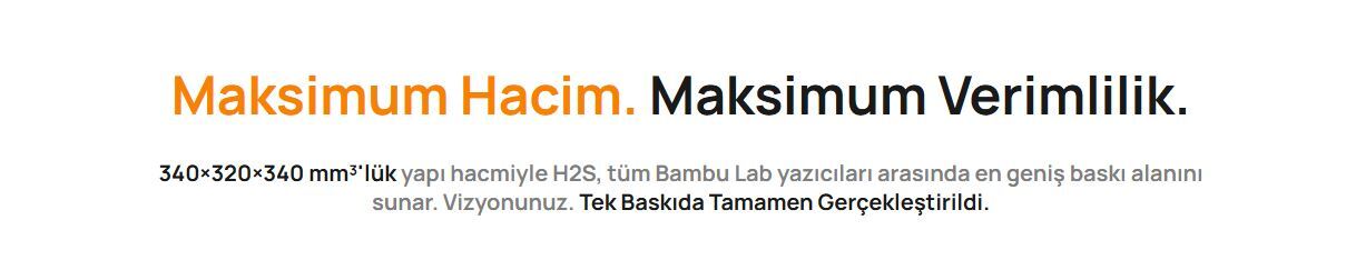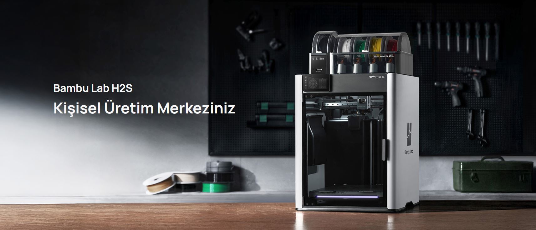 Bambu Lab H2S is a next-generation FDM 3D printer suitable for professional use, featuring high volume, industrial-grade speed/stability, and an advanced sensor suite. With a build volume of 340 × 320 × 340 mm, a 350 °C nozzle, 120 °C bed, and an actively heated chamber up to 65 °C, it delivers repeatable results even with demanding materials such as ABS, ASA, PA, PC, PPS, and fiber-reinforced composites. A maximum 1000 mm/s travel speed and 20,000 mm/s² acceleration significantly shorten production time on large projects.