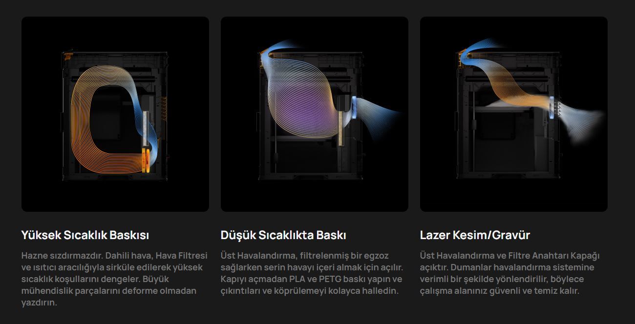 | Fans | Part cooling, hotend, mainboard, chamber exhaust & circulation, auxiliary cooling – closed-loop control |