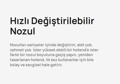 | Nozzle / Hotend | All-metal hotend, hardened steel nozzle |