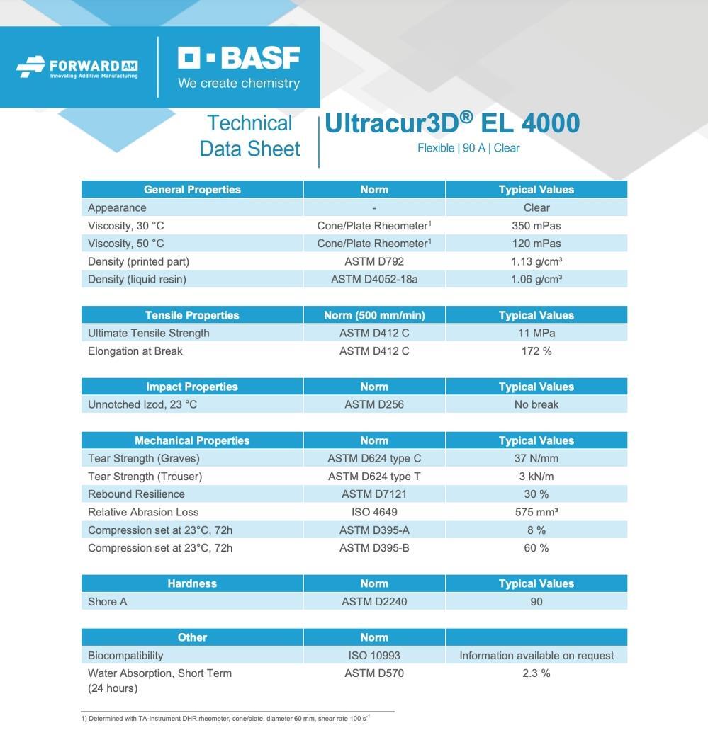 BASF Ultracur3D EL 4000 Technical Specifications: