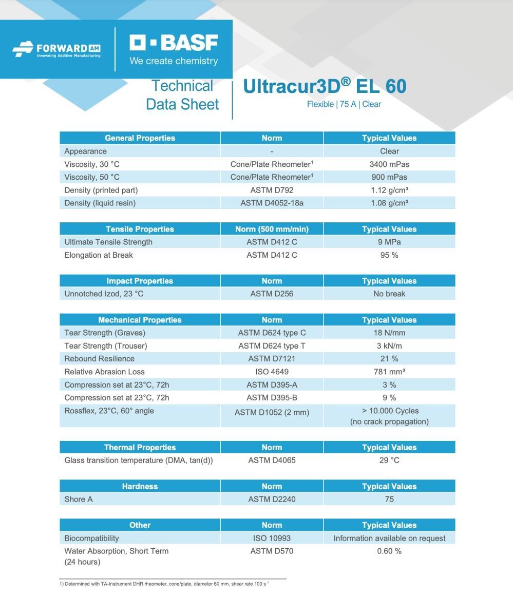 BASF Ultracur3D EL 60 Technical Specifications: