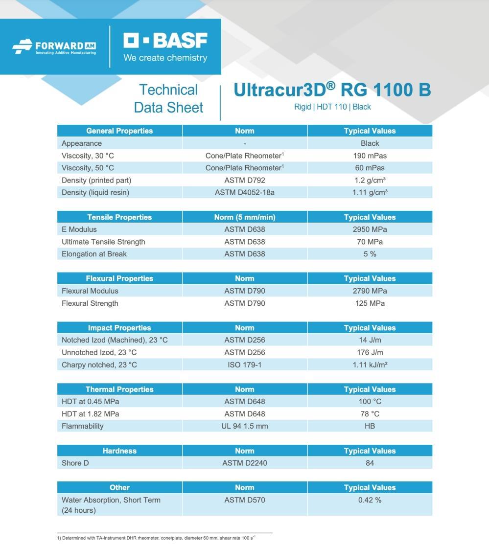 BASF Ultracur3D RG 1100 Technical Specifications: