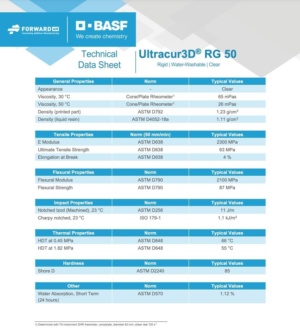 BASF Ultracur3D RG 50 Teknik Özellikleri:
