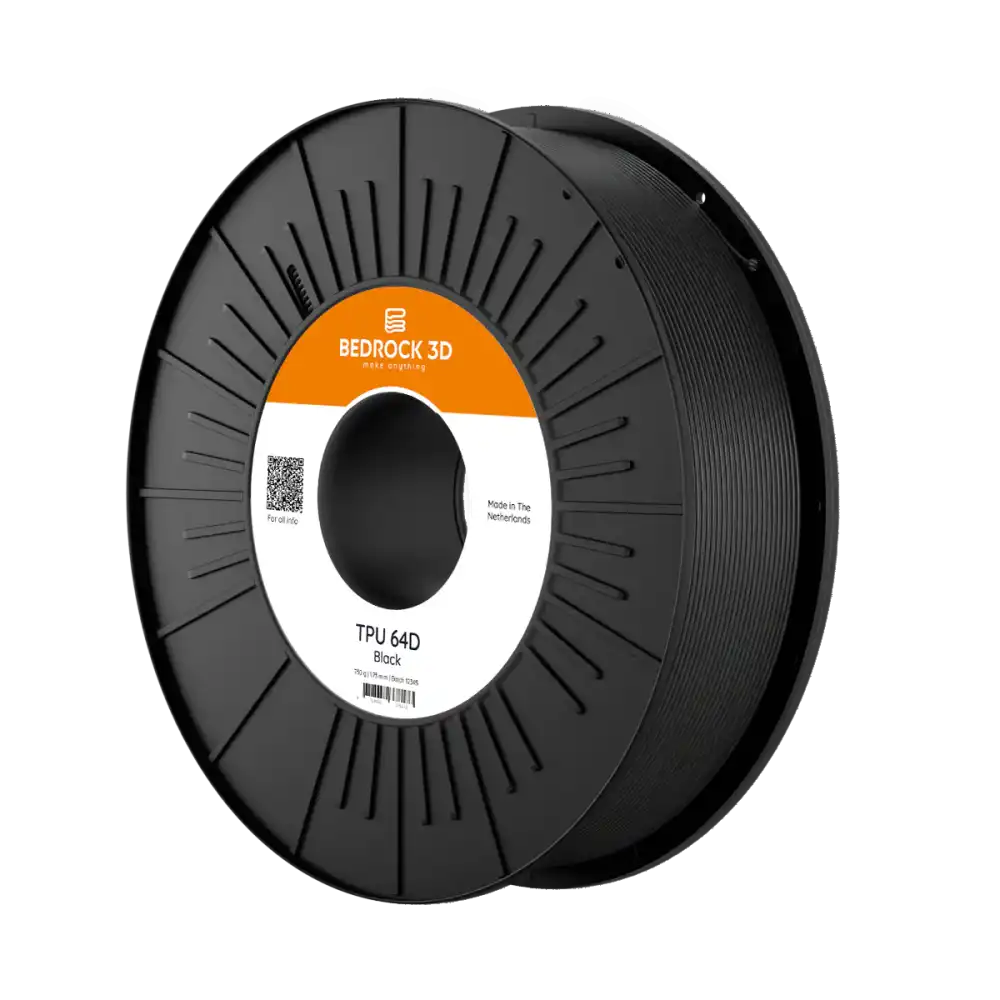 Bedrock Ultrafuse TPU 64D Siyah Filament, BASF Ultrafuse teknolojisi kullanılarak geliştirilmiş, yüksek sertlik ve mekanik dayanım sunan mühendislik sınıfı bir TPU filamenttir. Shore 64D sertlik değeri sayesinde klasik TPU filamentlere kıyasla çok daha rijit ve sağlam parçalar üretmeye olanak tanır.