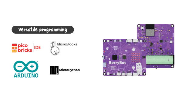 After completing the setup, you can improve your programming skills by programming BerryBot using the PicoBricks IDE, either block-based or text-based.