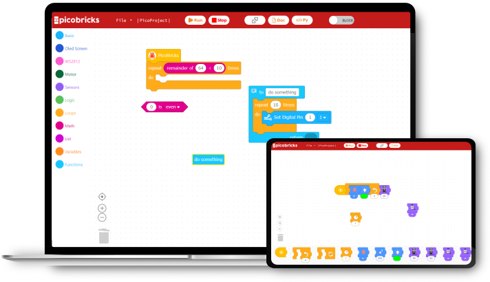 After completing the setup, you can improve your programming skills by programming BerryBot using the PicoBricks IDE, either block-based or text-based.