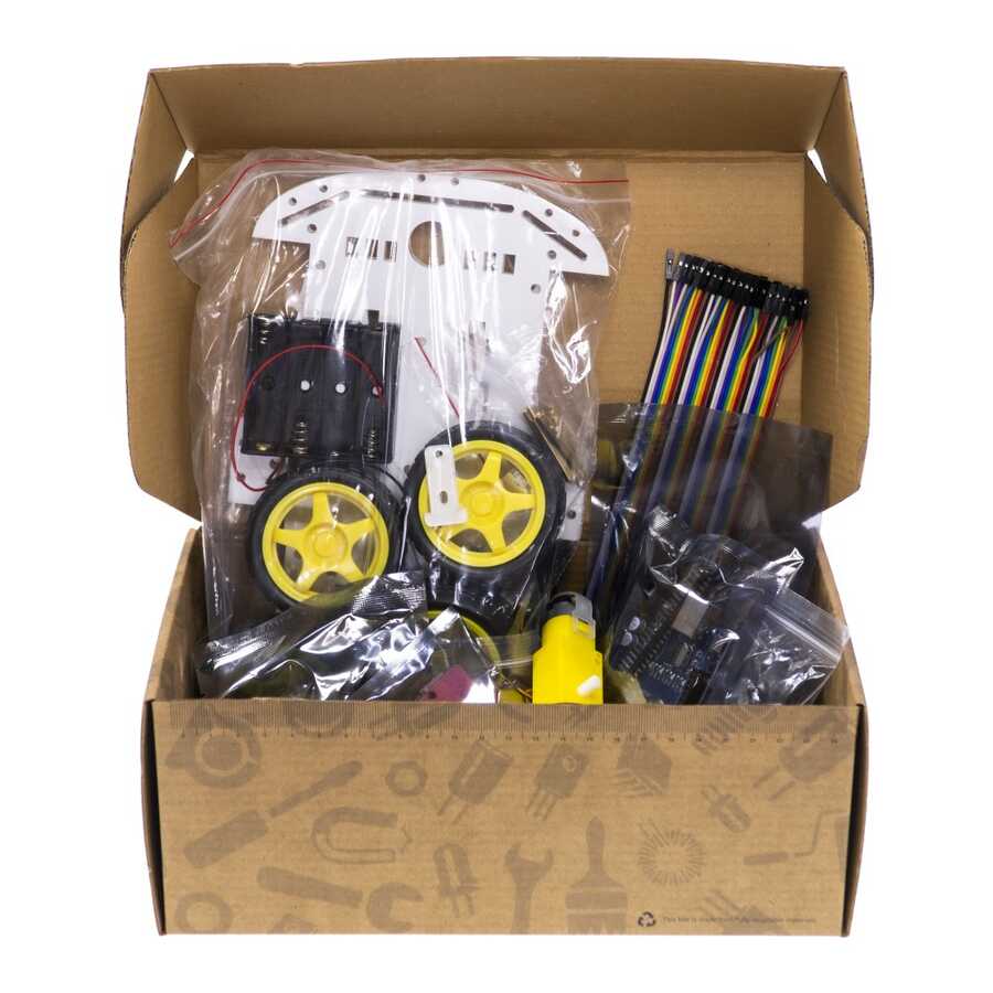 Notify me when its in stockThis is an Arduino and Bluetooth based platform that will help you to make projects. This set includes gearmotors, body, driver, Arduino UNO, line sensors, pantlit, ultrasonic sensor, bluetooth module, 18650 battery housings and more. You can find all the materials you need for an Arduino based bluetooth controlled robot project.