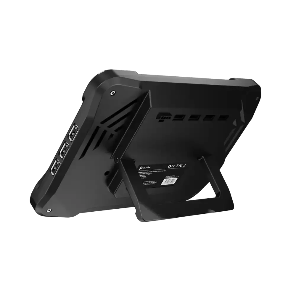 On the right side of ChromaPad, there are 3 USB ports available. These ports can be used to connect systems like 3D printers and Input Shaper. At the rear, there is one ChromaHead socket enabling toolhead control, while 4 extruder slots are provided to manage extruders. On the left side of the tablet, there is a power button and a power slot.