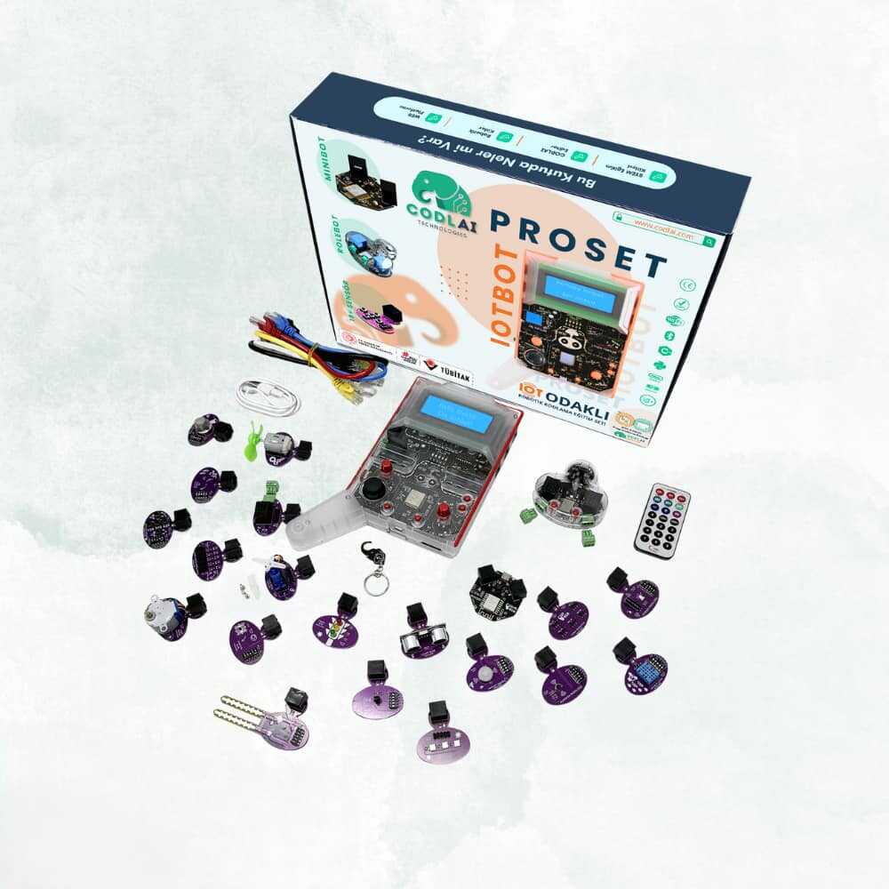 Codlai Proset; üç farklı programlanabilir IoT tabanlı anakart, 19 adet sensör modülü ve yardımcı aksesuarlarıyla başlangıçtan ileri seviyeye kadar geniş bir öğrenme yelpazesi sunar. Wi-Fi ve Bluetooth destekli kartlar sayesinde geliştirilen projeler uzaktan kontrol edilebilir, sensör verileri internet üzerinden izlenebilir ve modern IoT uygulamalarına dönüştürülebilir.