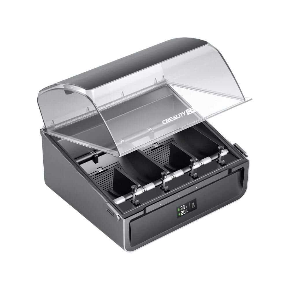 Cihazın en dikkat çekici özelliklerinden biri olan akıllı RFID teknolojisi, uyumlu Creality filamentlerini otomatik olarak tanır ve parametreleri en iyi sonuç için ayarlar. Ayrıca tamamen kapalı yapısı ve dahili nem/sıcaklık sensörleri sayesinde filamentlerinizi her zaman baskıya hazır ve kuru tutar.