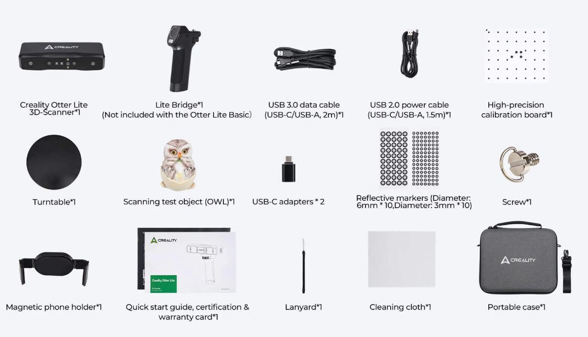 Creality Otter Lite 3D Scanner Technical Specifications: