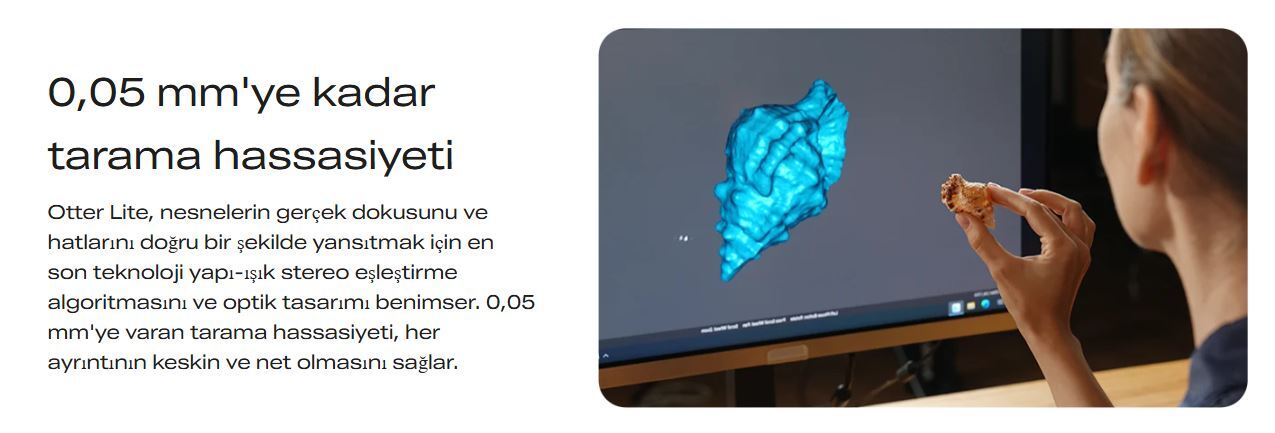 The Creality CR-Scan Otter Lite is a portable and versatile NIR (near-infrared structured light) 3D scanner designed for users who need high precision at close range. With accuracy up to 0.05 mm and a 3D resolution range of 0.1–2 mm, it can easily capture both small detailed parts like screws and larger objects such as automotive components or the human body. Its four-eye stereo vision architecture provides a large scanning volume while maintaining stable tracking and rich detail even on complex surfaces.