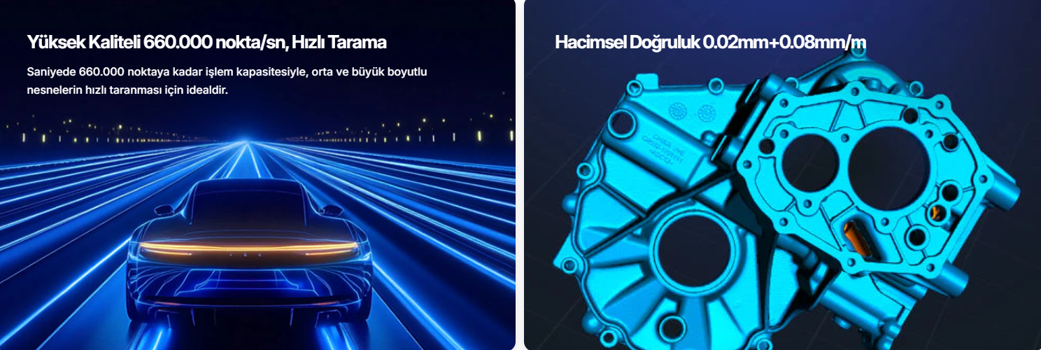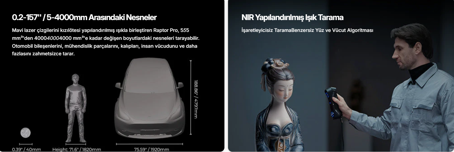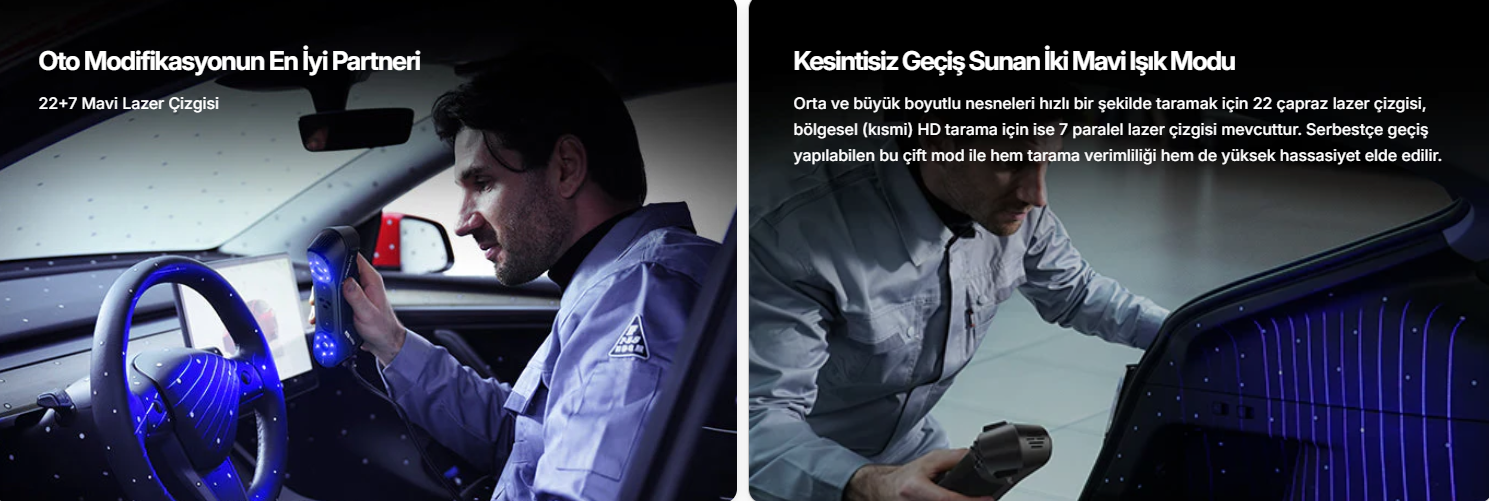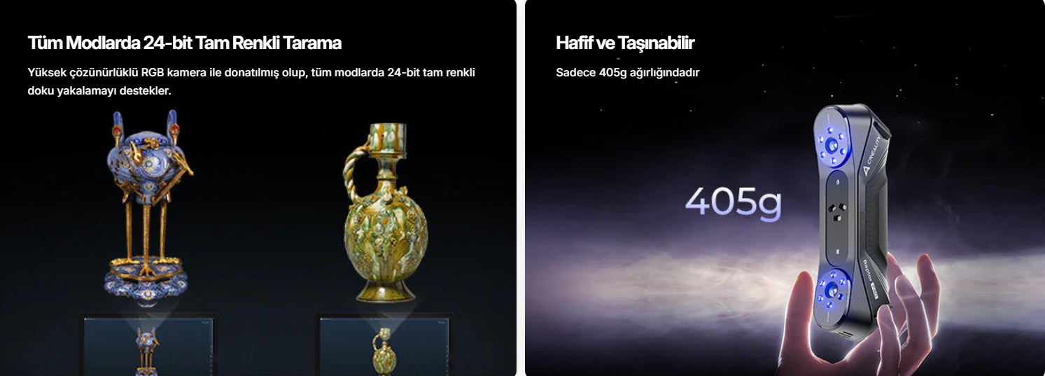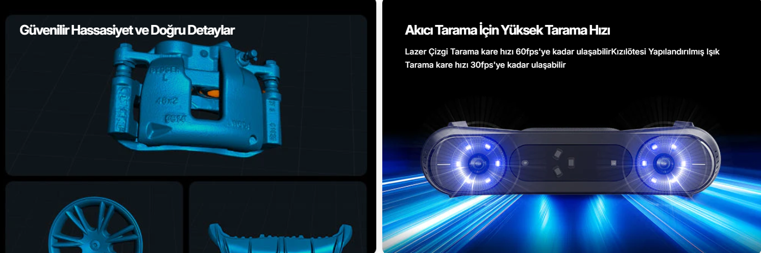 Kullanım Alanları: Tersine mühendislik, ürün geliştirme, otomotiv, bakım-onarım, 3D baskı öncesi modelleme