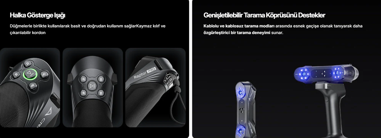 Hedef Kullanıcı: Raptor genel amaçlı profesyonel/hobi kullanımına uygunken, Raptor Pro daha profesyonel tarama ve üretim süreçleri için tasarlanmıştır.